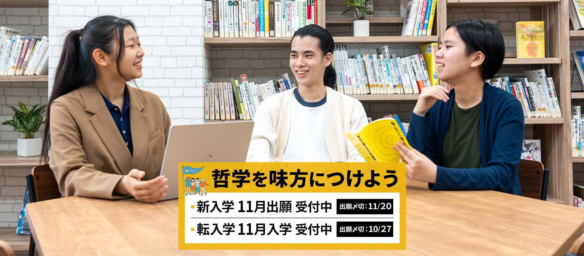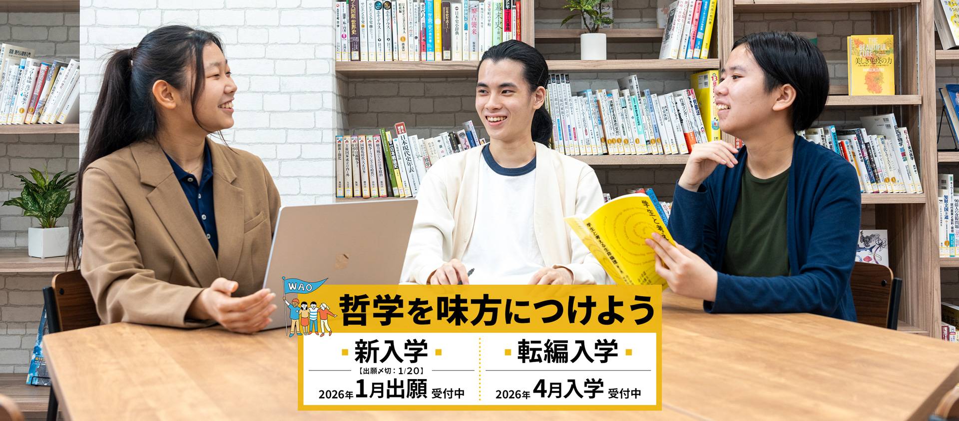 キーワードは「学育」。教員が一方的に教えるという旧来の学校スタイルではなく、生徒と共に学び、教員も学ぶことを楽しみ、生徒と共に教員も成長を目指すのがワオ高校の特長です。哲学・科学・経済という教養探究科目にも豊富な社会経験を活かして対応し、深く考える力を育てていきます。