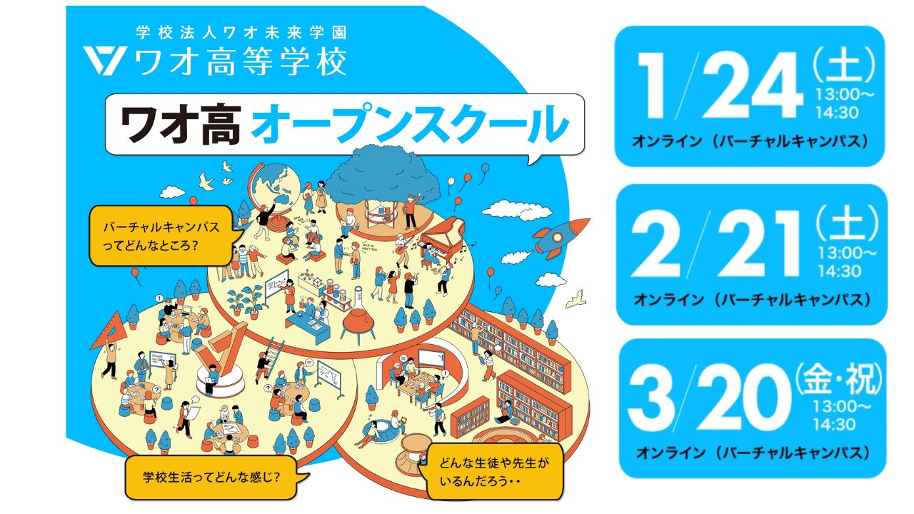 ワオ高校では2026年1月~3月もオンラインにて「ワオ高オープンスクール」を実施いたします。