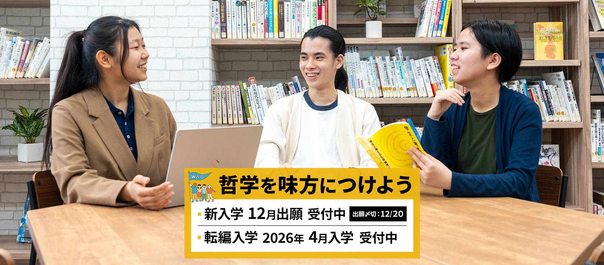 キーワードは「学育」。教員が一方的に教えるという旧来の学校スタイルではなく、生徒と共に学び、教員も学ぶことを楽しみ、生徒と共に教員も成長を目指すのがワオ高校の特長です。哲学・科学・経済という教養探究科目にも豊富な社会経験を活かして対応し、深く考える力を育てていきます。