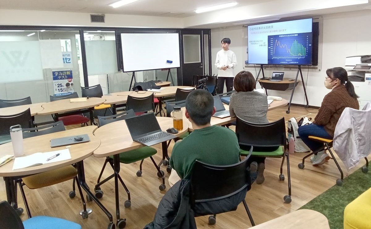 1月~3月に、大阪梅田キャンパスの通学コースでは、防災をテーマにした探究活動に取り組みました。1月21日に行った校外学習を踏まえ、通学コースの1年間の集大成として、校外学習・事後学習・発表までを一つの探究活動として実施しました。