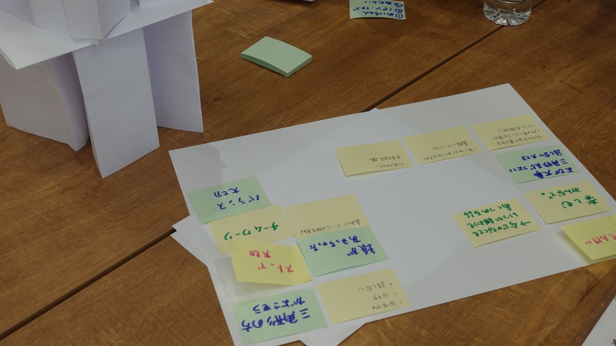 最初のアイスブレイクも兼ねて行ったのは、チーム対抗の「ペーパータワー」づくりです! ただ紙を積むだけでなく、「どうすればより高く、安定して積み上げられるか?」をチームごとに作戦を練って実行するワークショップ形式で行いました。