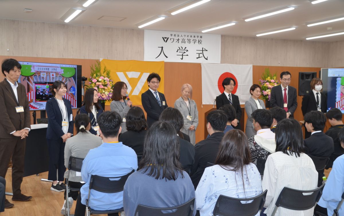 4月13日(月)、ワオ高校岡山本校にて、2026年度入学式を挙行しました。この日から始まるスクーリングに合わせて実施するもので、全国から新入生が参加し、緊張した面持ちながらも、新たな一歩を踏み出す大切な一日となりました。オンラインのバーチャルキャンパスでは在校生や保護者が見守りました。