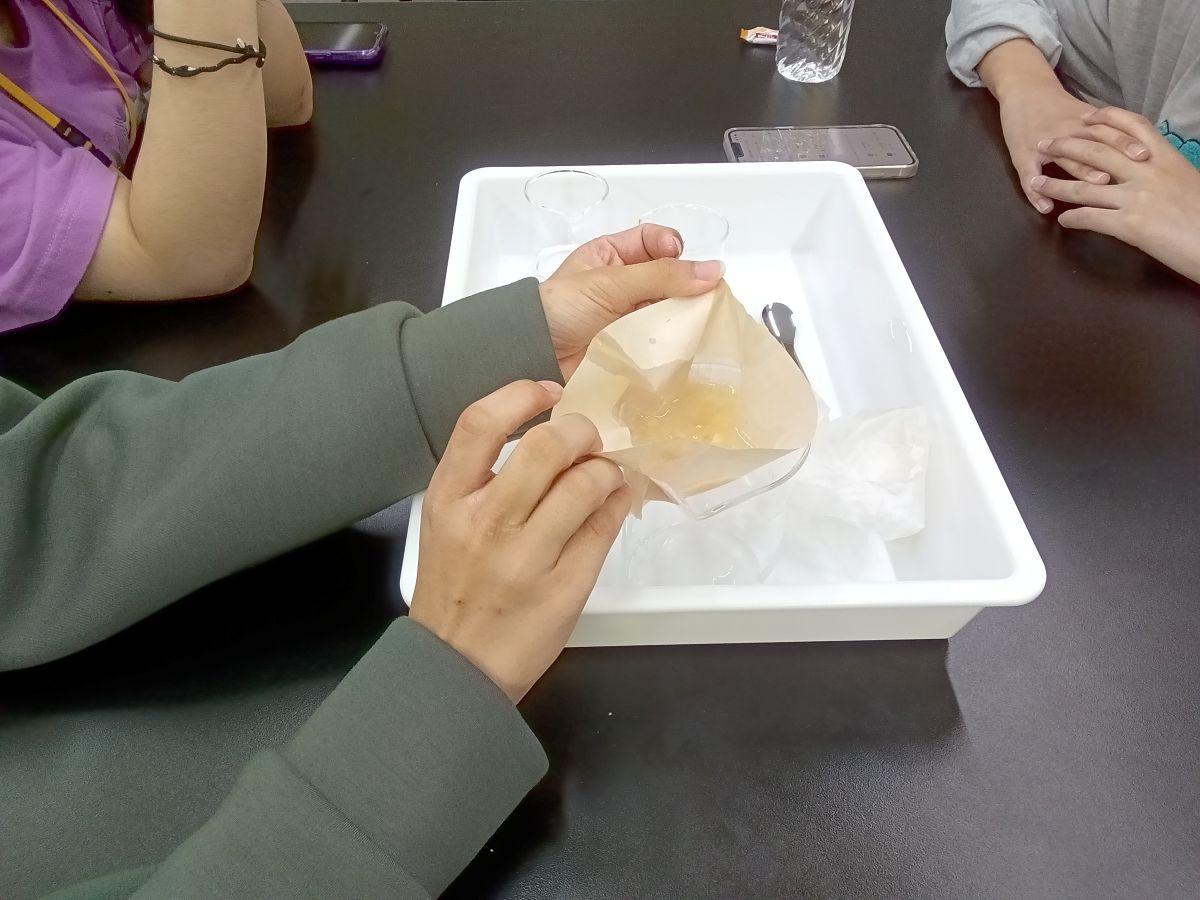 生徒たちはわいわいと楽しみながらも真剣に試薬を扱い、実験手順を確認し合って、協力して取り組んでいました。