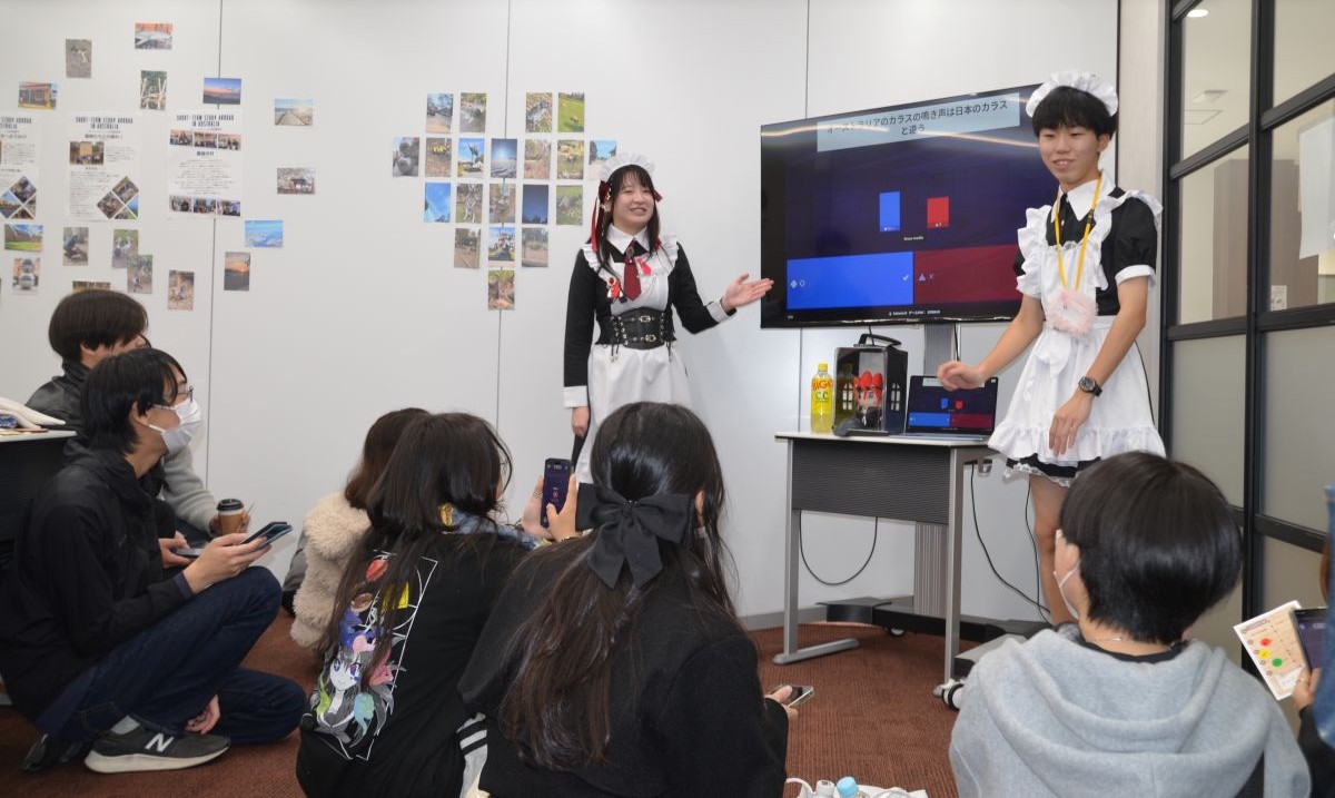 図書館では、哲学カフェとメイド喫茶を実施。メイド喫茶では、性別を問わずかわいいメイド服に身を包んだ生徒たちが来場者をおもてなしし、会場全体が一気に華やいだ雰囲気に。