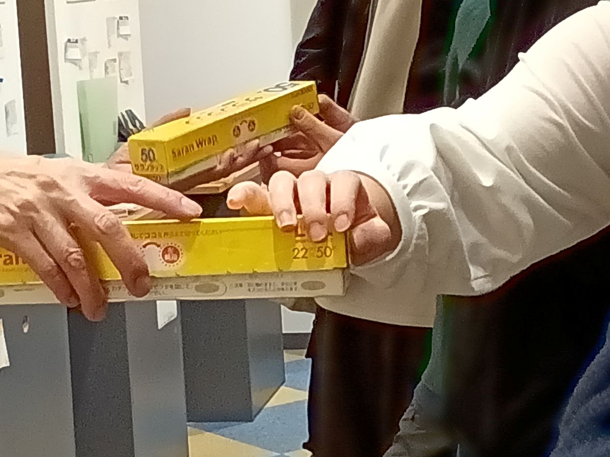 材料費だけで個別に作ってくれるボランティア団体の話には驚きの声が上がり、身の回りの道具に潜むユニバーサルデザインについて考えるきっかけにもなりました。シャンプーやリンス、缶やラップのユニバーサルデザインについては知っている生徒も多かったですが、江戸時代の柏餅の葉の向きで餡の種類を伝えていたという歴史的な工夫に、生徒たちは「面白い!」と興味津々でした。
