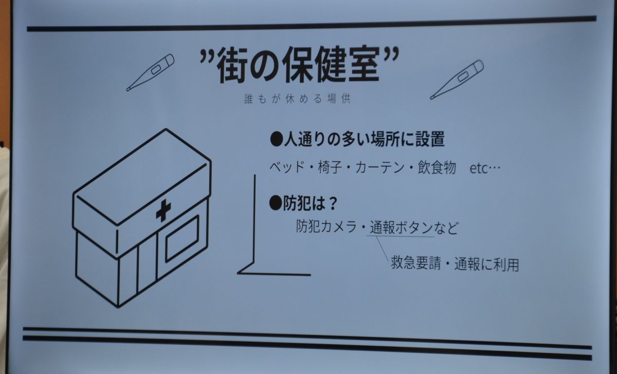 • 体がしんどいときに街中で気軽に休める「街の保健室」の提案 など