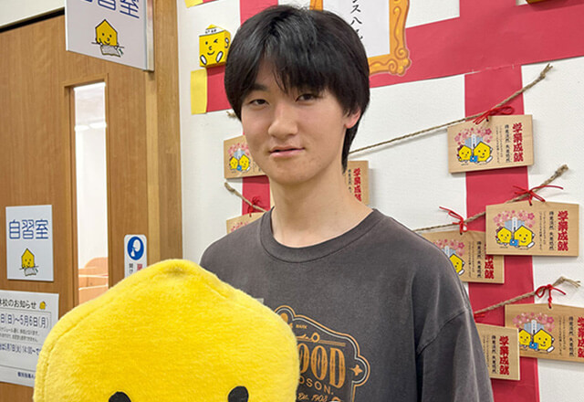 自分にぴったりの学習方法で成績向上受験モードに入ってから趣味の時間を大幅に削り、Axis自習室をフル活用して猛勉強。25分で区切って集中力を高めたり、自分で学習計画を立てたりするなど、自分にぴったり合う学習方法を確立。その結果、苦手だった英語の成績などが大幅にアップし、目指していた同志社大学合格を果たしました。